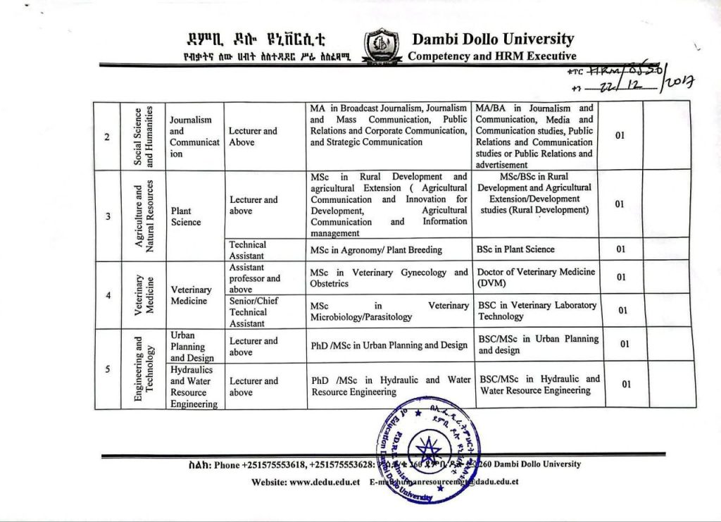 Dambi Dollo University Website: www.dedu.edu.et E-mail: humanresourcemg@dadu.edu.et Phone: +251575553618, +251575553628, +251575553629