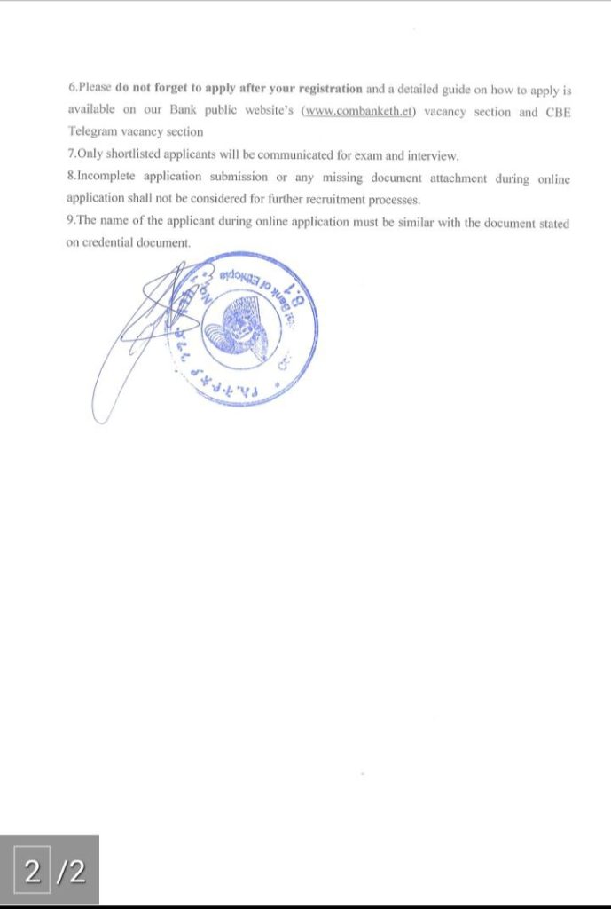 • Application Link: All applications must be submitted through the CBE career website at https://vacancy.cbe.com.et. A detailed guide on how to apply is available on the bank’s public website and Telegram vacancy section.