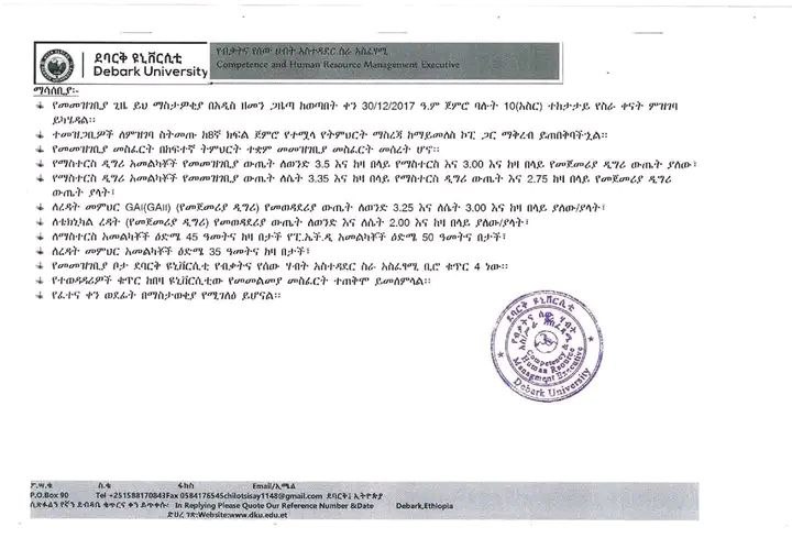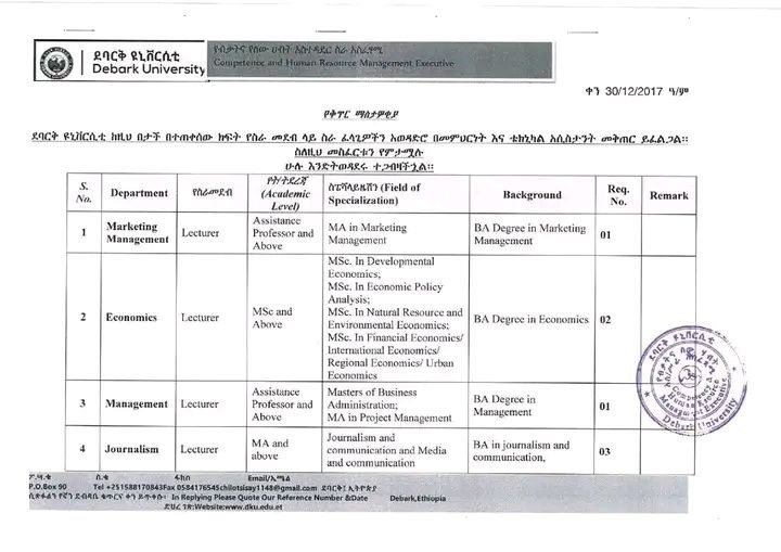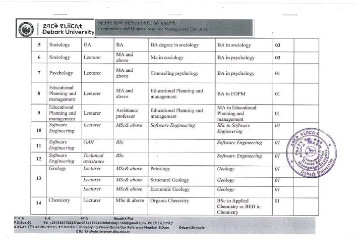 Debark University is currently recruiting qualified candidates for academic positions within the Social And Natural Sciences sector. We are looking for dedicated individuals to join our team in a variety of roles, including Assistant Lecturer, Graduate Assistant, and Contract Lecturer. These positions are open to both internal staff members and external candidates from other universities.