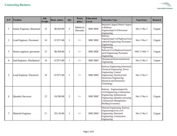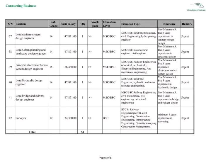Ethio-Djibouti Railway wants to hiring in differnt position