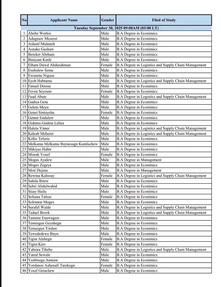 All candidates must bring their Kebele ID or National ID.