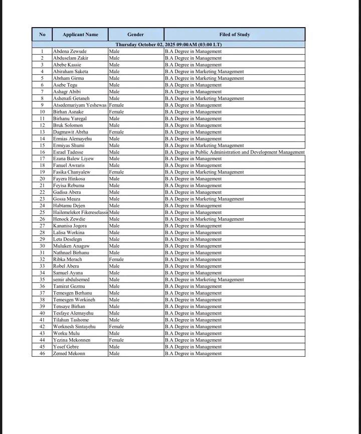 This announcement concerns only those who took the exam in Addis Ababa.