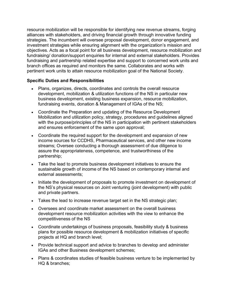 ๐ Business Expansion: Leads the development and expansion of new income sources (e.g., CCDHS, Pharmaceutical services) and promotes business development initiatives to ensure the sustainable growth of the National Societyโs income.