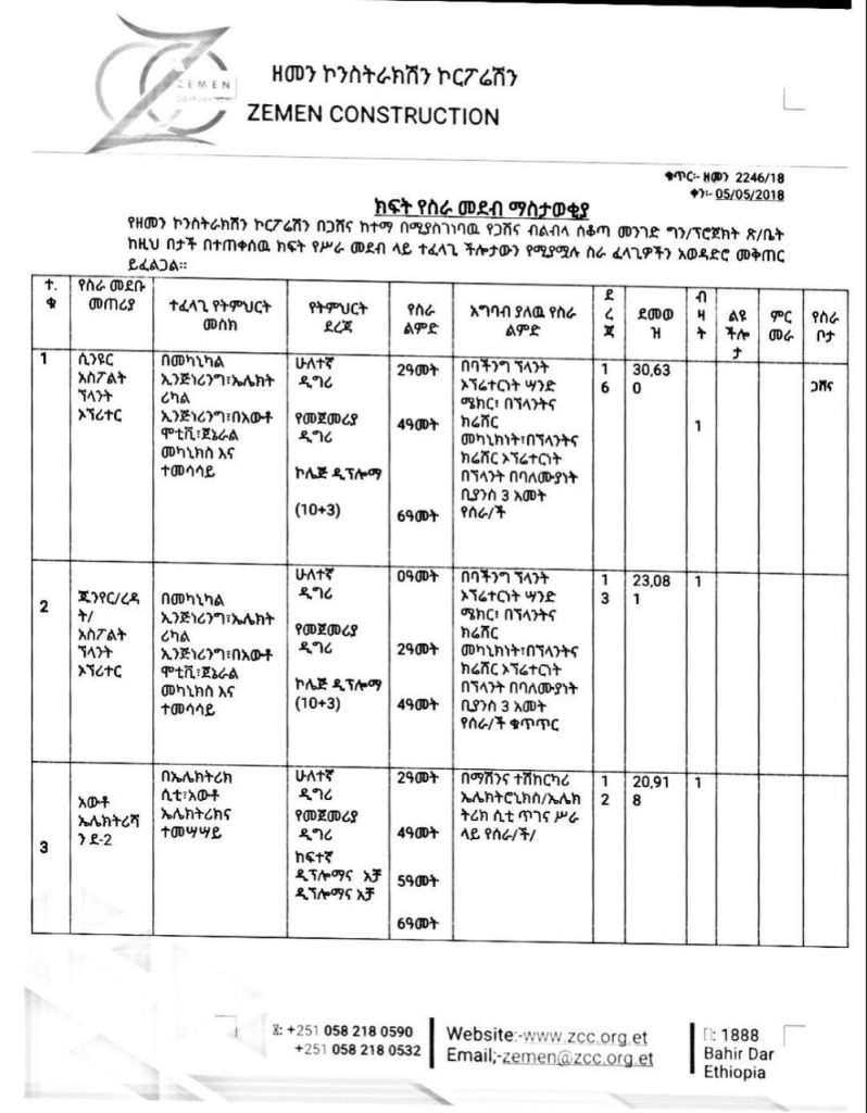 - Email: zemen@zcc.org.et