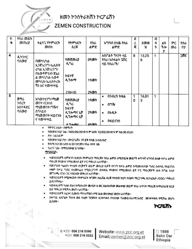 Zemen Construction Corporation External Vacancy