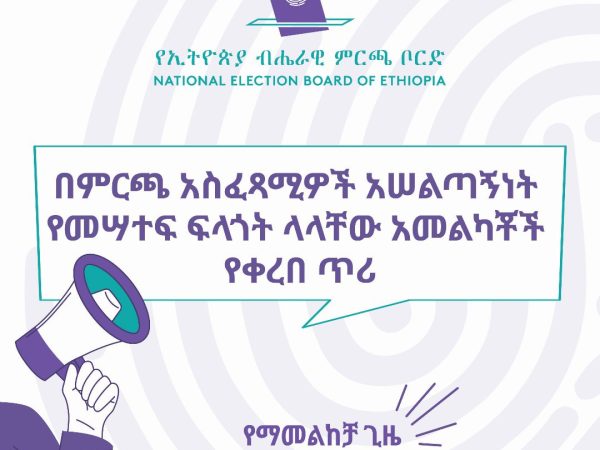 The Ethiopian National Election Board (NEBE) is recruiting qualified, neutral coaches to train election executives in the Oromia and Somali regions. Apply by September 24, …